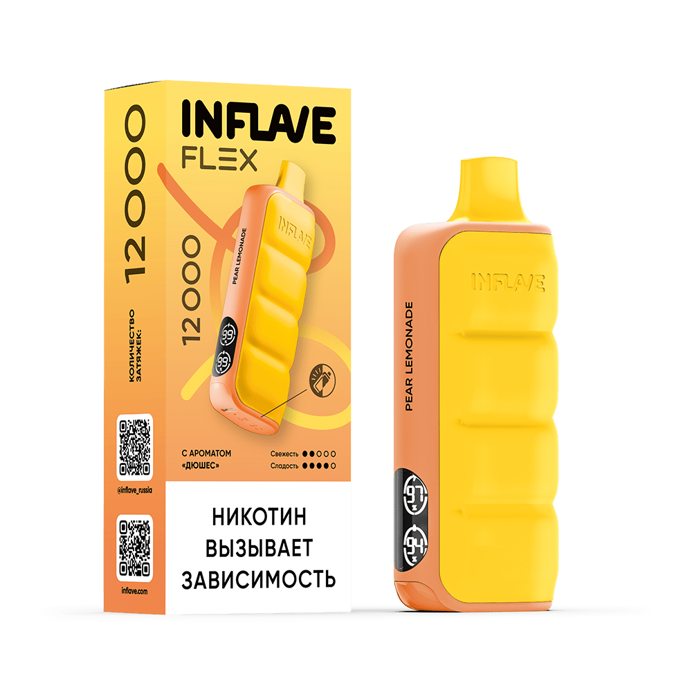 Количество затяжек, шт12000 Крепость, %2 ЛинейкаINFLAVE FLEX 12000